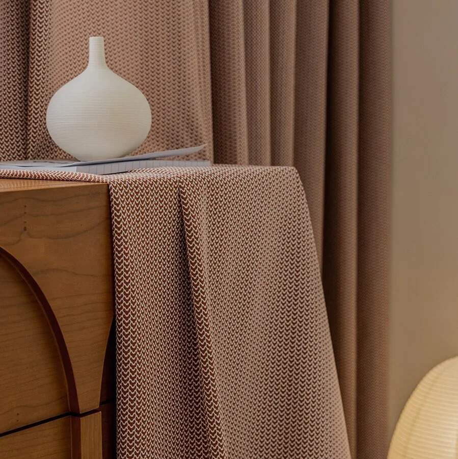 Our Geometric Jacquard Curtains offer a seamless blend of modern design and reliable blackout performance. Crafted from 100% polyester at approximately 250 GSM, the fabric showcases a woven geometric pattern that adds texture and visual interest.